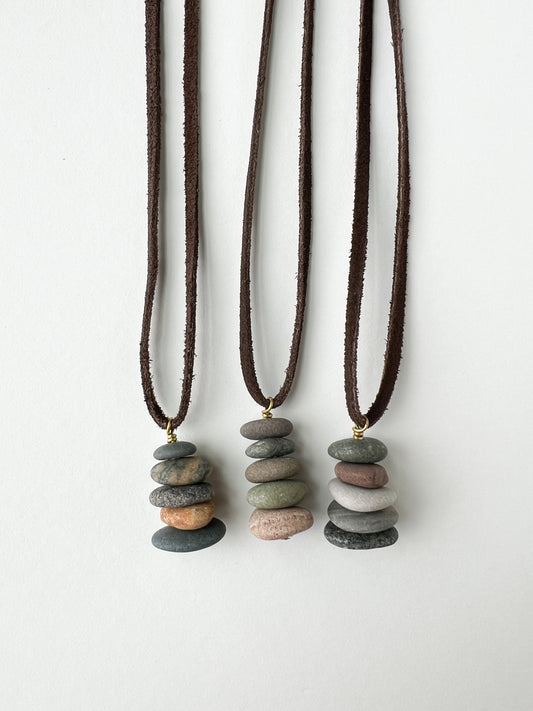 STACKED STONE CAIRN NECKLACE LEATHER CORD