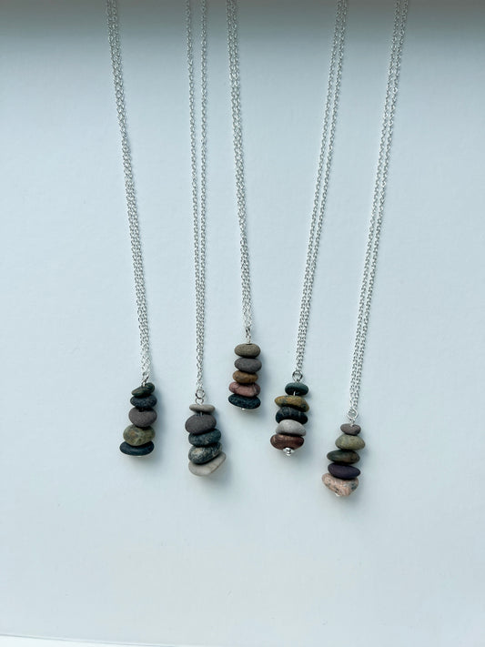 STACKED STONE CAIRN NECKLACE SILVER CHAIN